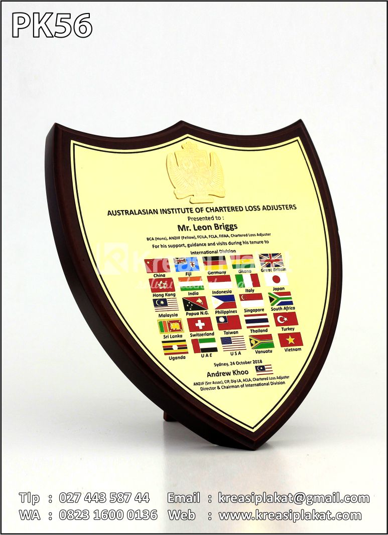 Plakat Kayu Ekslusif merupakan plakat kayu yang unik karena perpaduan logam kuningan yang serasi membuat plakat ini terkesan indah. Pemilihan bentuk plakat juga menambah kesan sederhana namun tetap elegan.