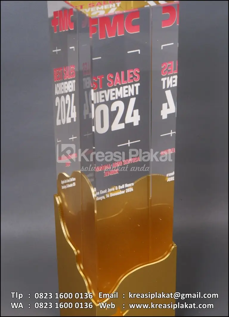 Dalam pembuatan Plakat Kristal FMC Best Achievement ini, kami mengutamakan quality control sesuai standar kami. Mulai dari desain, pemilihan bahan baku berkualitas, teknis pengerjaan, perakitan serta proses pengiriman produk agar terjamin aman.